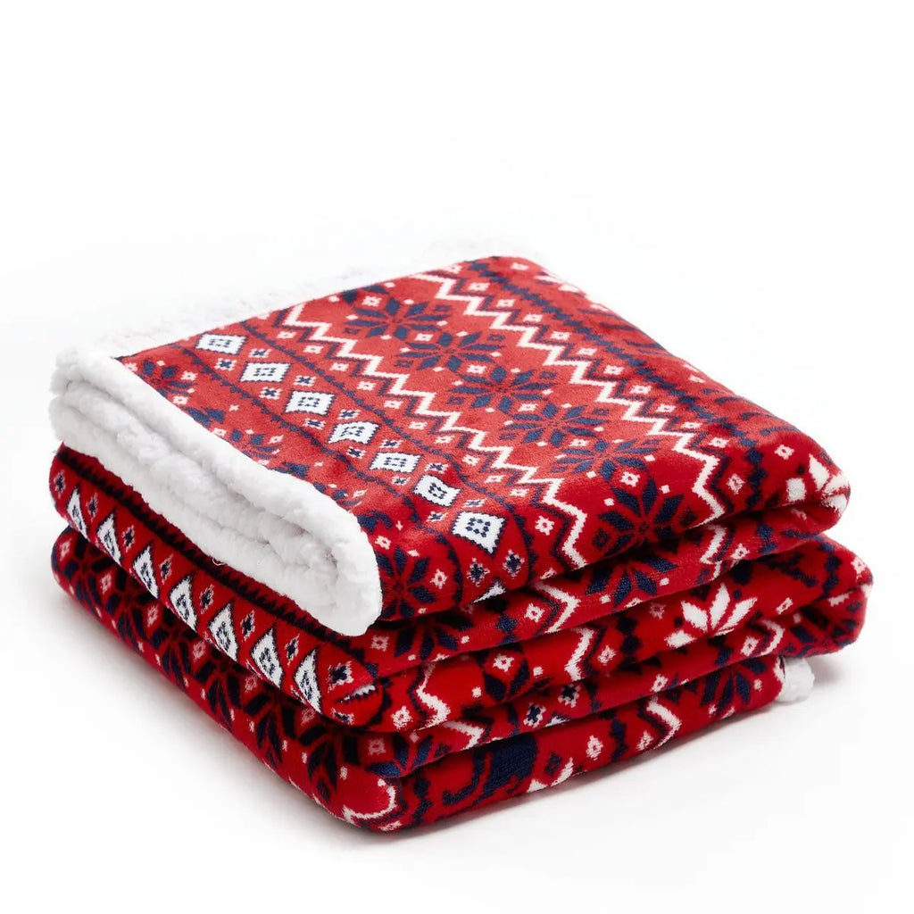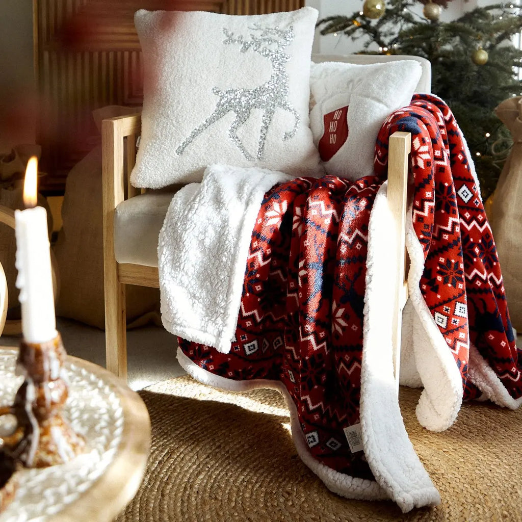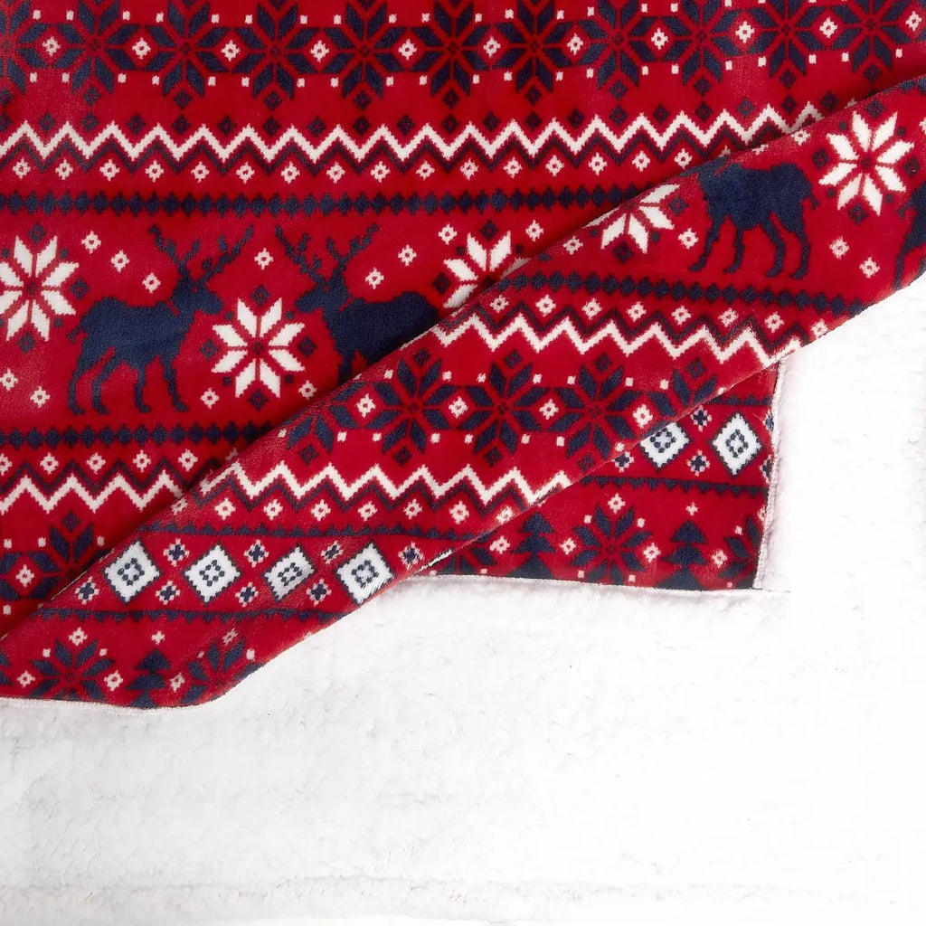 Christmas red blanket with snowflakes and reindeer 150x200 cm