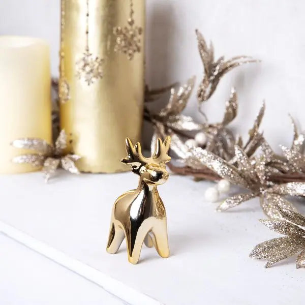 The DARIAN reindeer from the PINK CHRISTMAS Christmas collection is a great addition to your Christmas decoration, adding a touch of colour to your arrangement. The product is made in the shape of a reindeer in gold , which has, thanks to its texture has a mirror-like character . Thanks to its dimensions, i.e. 5x7 cm , it easily fits into all corners of the home and adds a Christmas aura.