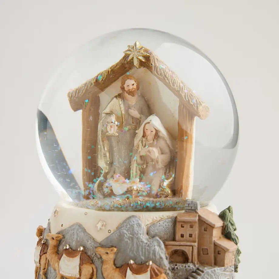 The NOELIO snow globe embodies the spiritual meaning of Christmas . At its center, you will find a detailed depiction of the Bethlehem scene (Nativity Scene), which comes to life under the flying snow and is accompanied by a peaceful Christmas melody . It is a timeless gift and a treasured family keepsake.
