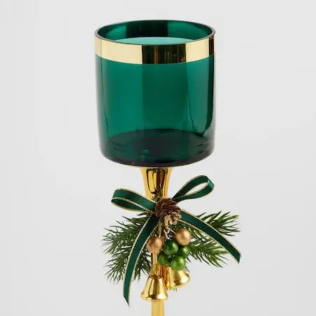 Main colors: Gold (stand) and Dark Green (candle holder).