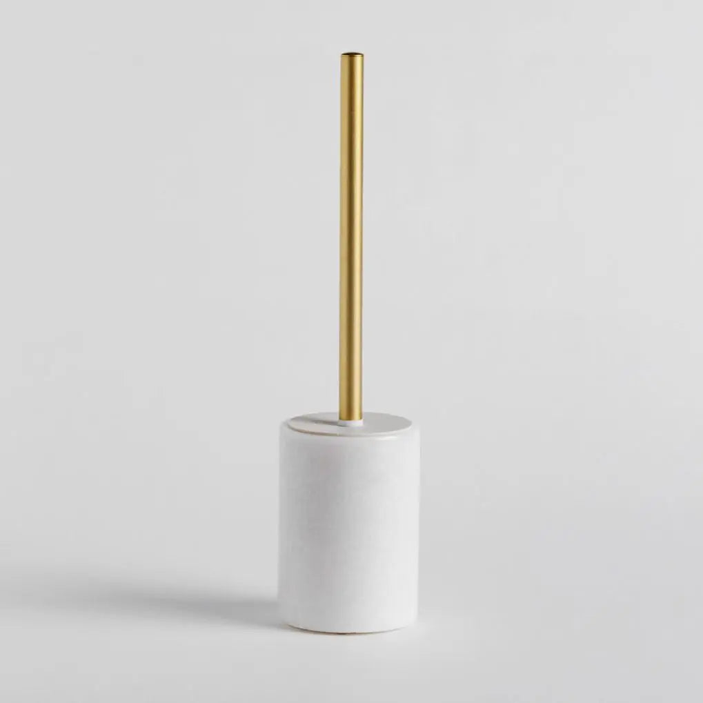 White toilet brush. It is made of high-quality marble and is an elegant and timeless accessory that, thanks to its delicate appearance, fits into interiors of various styles. Marble is valued not only for its aesthetic values, but also for its durability. It is resistant to water absorption and scratch resistant. The gold detail in the form of a handle adds a luxurious touch and thus creates a perfect combination.