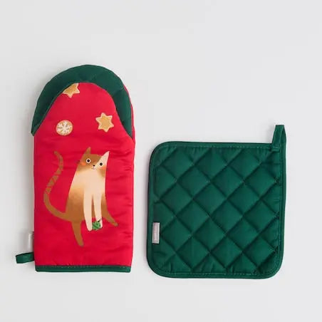 Add a little holiday magic to your kitchen with the Miaoumas 14x30 cm oven mitt and glove - a practical and stylish cotton duo from home&you, created for safety and comfort while cooking.