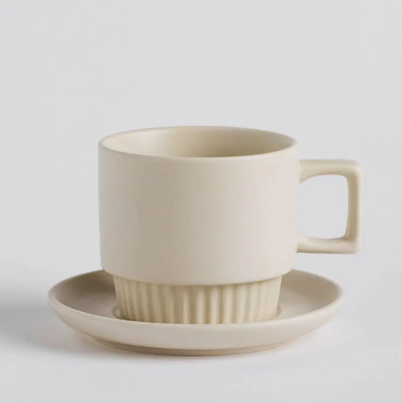 Beige porcelain cup with saucer. Whether you are a lover of hot black coffee, delicious tea or an herbal drink, you will always appreciate a high-quality and stylish cup and saucer. It can be a great gift.