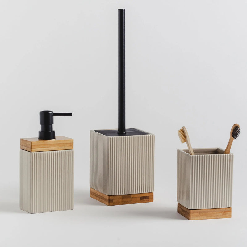 Beige toilet brush.