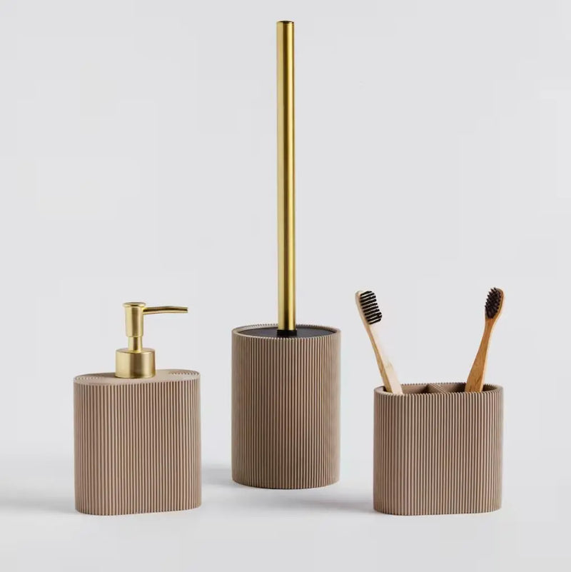 Beige toilet brush. It is one of the necessary accessories for every toilet. It is a simple and effective solution for cleaning and keeping it in good condition. A perfect complement to the interior design of your toilet.