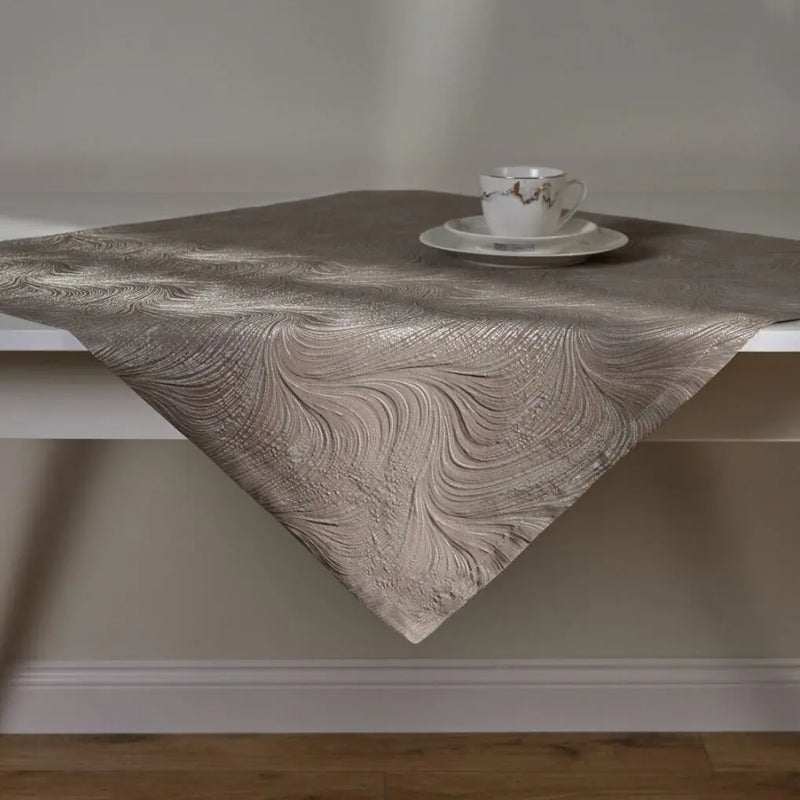 Beige polyester tablecloth with added viscose. It is not only a nice decorative addition to your table, but also protects the top from damage and stains. It will perfectly decorate your dining table or complement your interior.