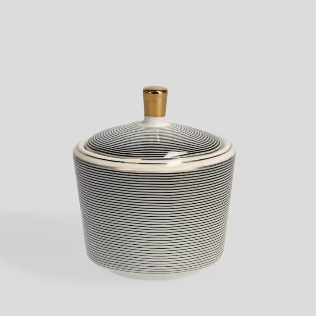Black porcelain sugar bowl. An elegant sugar bowl that fits into a classic, modern or rustic kitchen. It will create a pleasant dining experience.