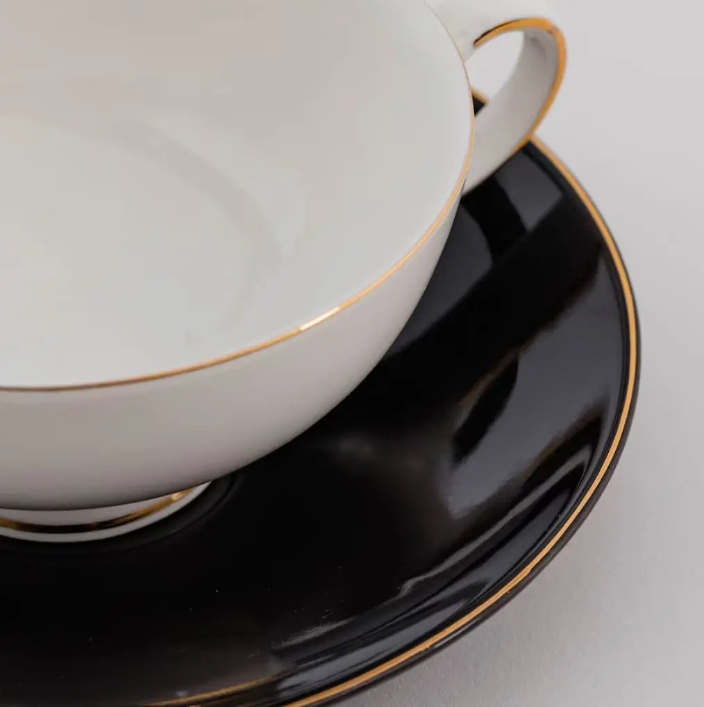 Black and white porcelain cup with saucer. Whether you are a lover of hot black coffee, delicious tea or an herbal drink, you will always appreciate a high-quality and stylish cup and saucer. It can be a great gift.