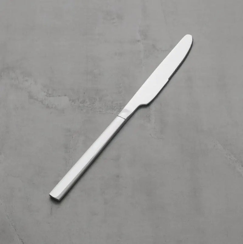 Silver knife from stainless steel. It has a classic design. Suitable for households as well as for professional gastronomy.