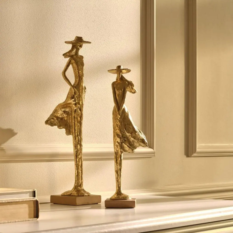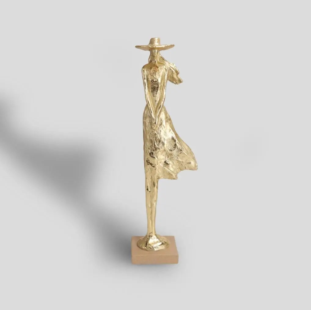 Golden polyresin figurine in the form of a figure in a hat. A stylish addition to any room. It will help to make your home cozier and create the perfect atmosphere.