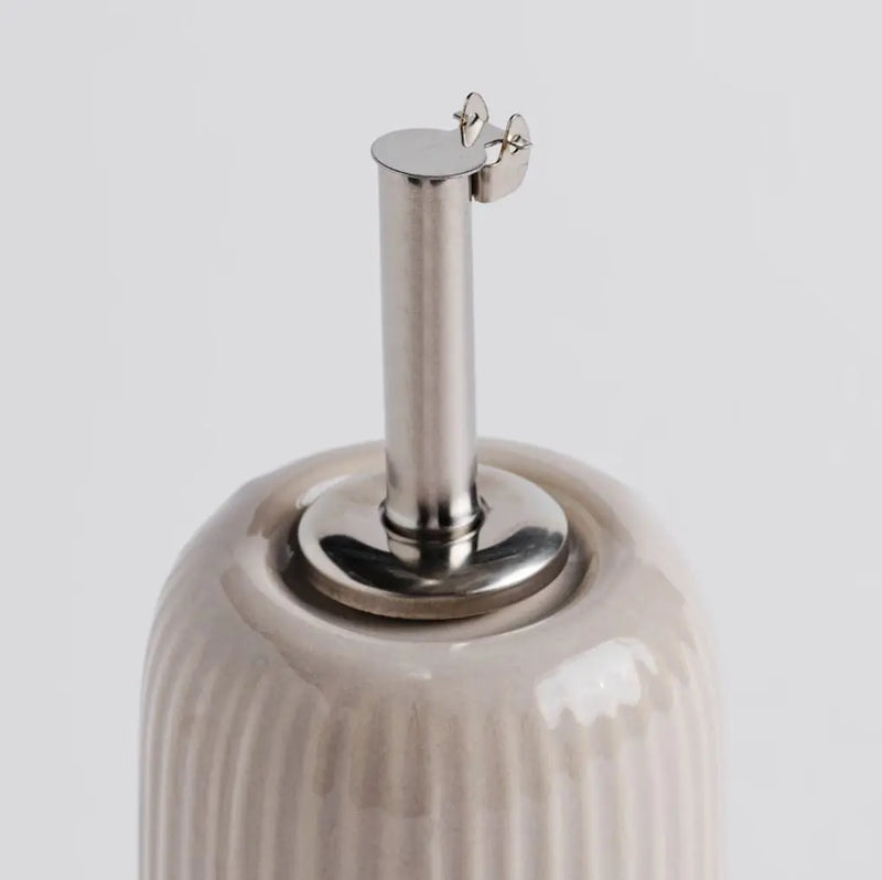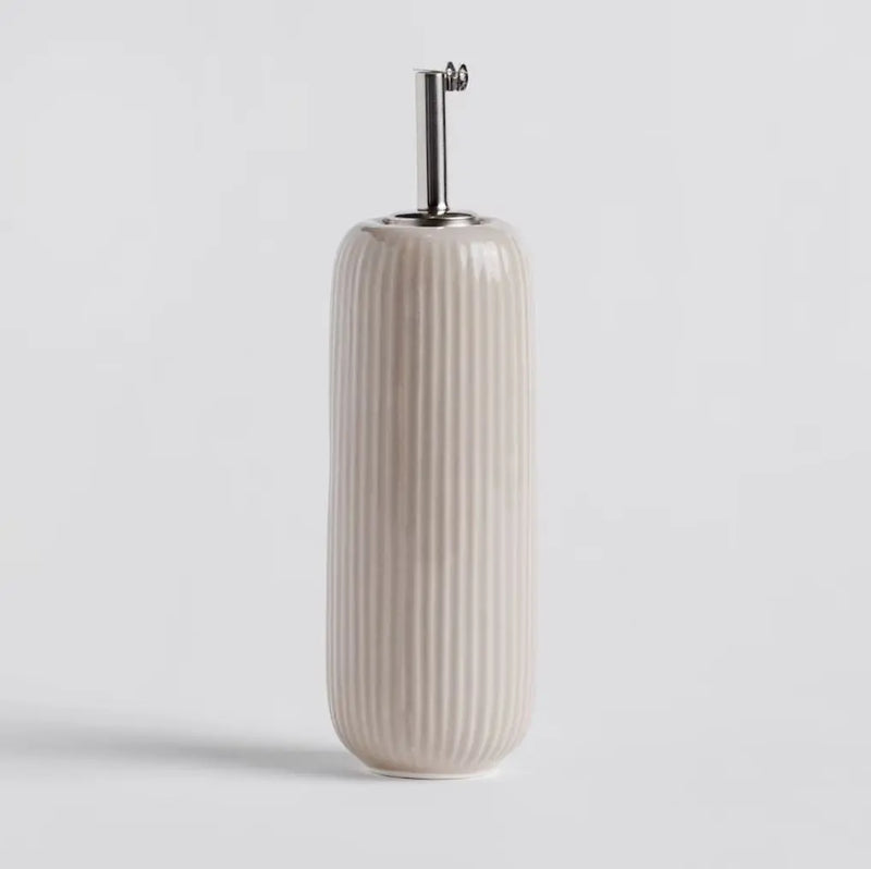 Béžová porcelánová nádoba na olej alebo ocot. Ideálna na podávanie vašich obľúbených dresingov, balzamikových octov alebo olejov. Vyrobená z kvalitného tvrdého porcelánu zaisťuje trvácnosť a odolnosť voči poškodeniu. Pevné spracovanie zaručuje stabilitu a bezpečnosť používania a ergonomický tvar uľahčuje nalievanie a podávanie tekutín.