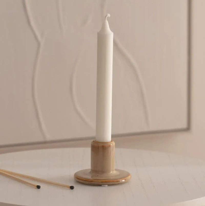 Béžový svietnik. Elegantný doplnok do každého interiéru. Vyzerá esteticky, ale zaisťuje aj trvanlivosť na roky. Vďaka svojmu minimalistickému dizajnu sa perfektne hodí do rôznych štýlov aranžmánov, od moderných až po klasické.