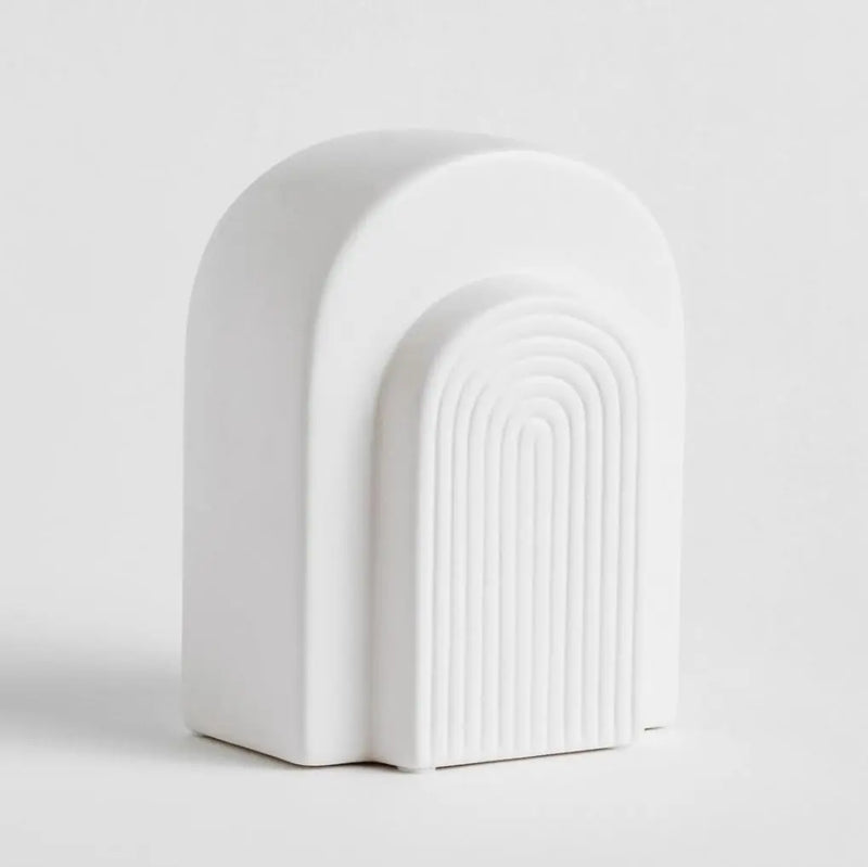 Biela minimalistická geometrická dekorácia. Je vyrobená z odolnej keramiky. Štýlový doplnok do každej miestnosti. Pomôže zútulniť váš príbytok a vytvorí dokonalú atmosféru.