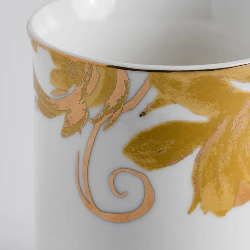 Bielo zlatý porcelánový hrnček. Či ste milovníkom horúcej čiernej kávy, lahodného čaju alebo bylinkového nápoja, kvalitný a štýlový hrnček vždy oceníte. Môže byť skvelým darčekom.