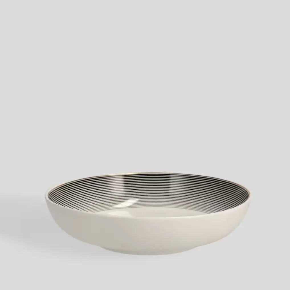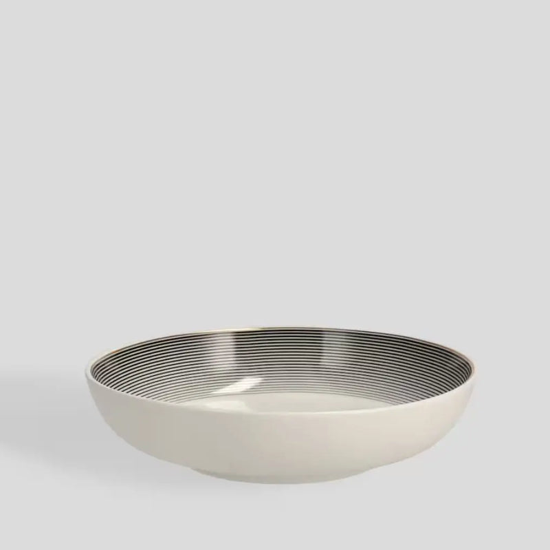 Čierna porcelánová miska. Je elegantným a funkčným prvkom vybavenia každej kuchyne. Vyznačuje sa vysokou životnosťou a odolnosťou voči poškodeniu, čo z nej robí ideálnu voľbu pre každodenné použitie. Perfektná na servírovanie šalátov, polievok alebo dezertov, spája trvanlivosť s estetikou, dodáva eleganciu každému jedlu a dokonale zapadne do rôznych interiérových aranžmánov.
