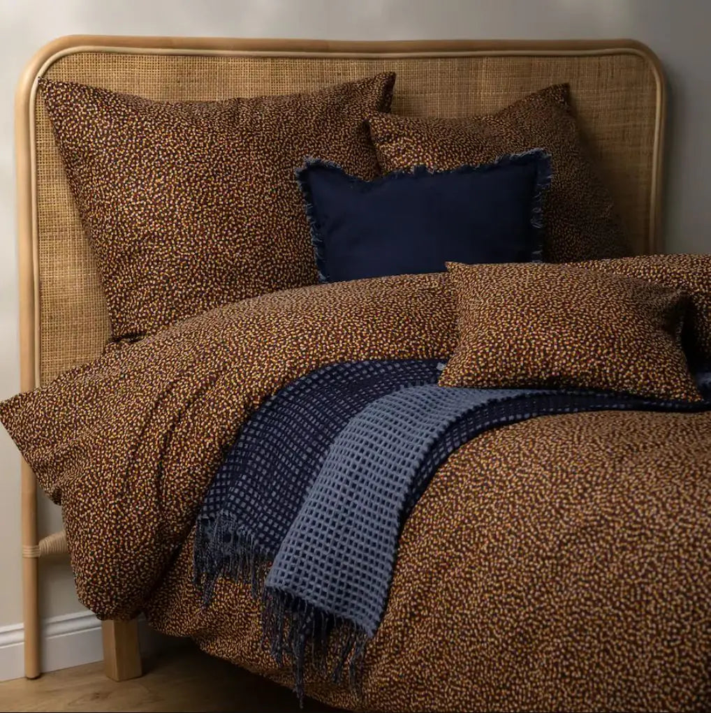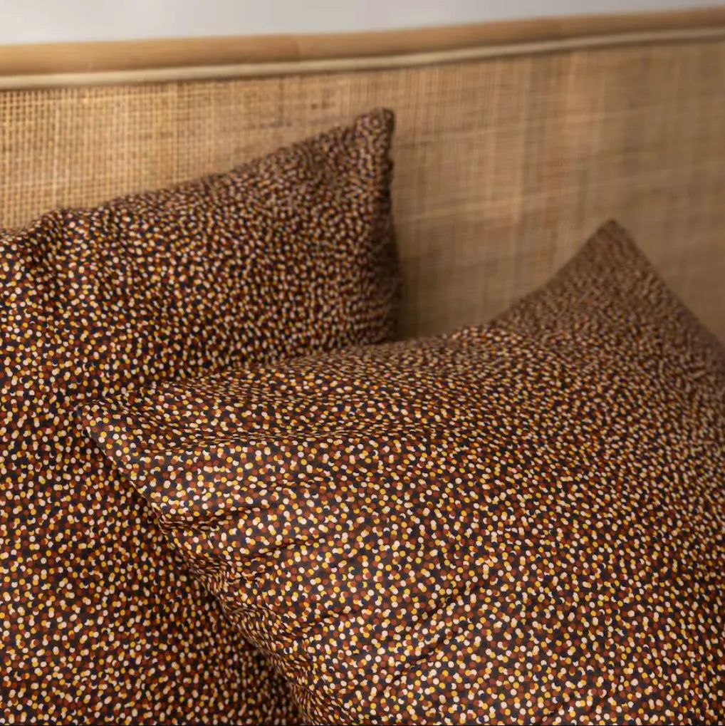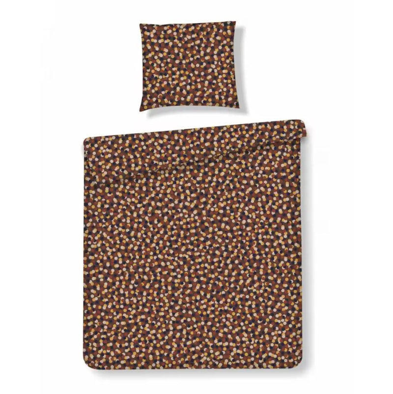 Hnedé bavlnené obliečky. Vynikajú svojou eleganciou a funkčnosťou. Ľanová väzba dodáva hladký povrch a vzor husto rozmiestnených bodiek dodáva interiéru moderný akcent. Priedušná bavlna zaručuje dostatočnú cirkuláciu vzduchu, čo prispieva k pohodlnému spánku a zabraňuje podráždeniu pokožky. Vďaka praktickému zipsu je výmena posteľnej bielizne rýchla a pohodlná. Každá posteľná súprava home&you má certifikát OEKO TEX alebo testy kontaktu s pokožkou. Vďaka tomu si môže byť užívateľ istý, že posteľná bielizeň vyhovuje predpisom, nespôsobuje alergie ani obsahuje karcinogénne látky. Výskum vykonávajú nezávislé výskumné ústavy.