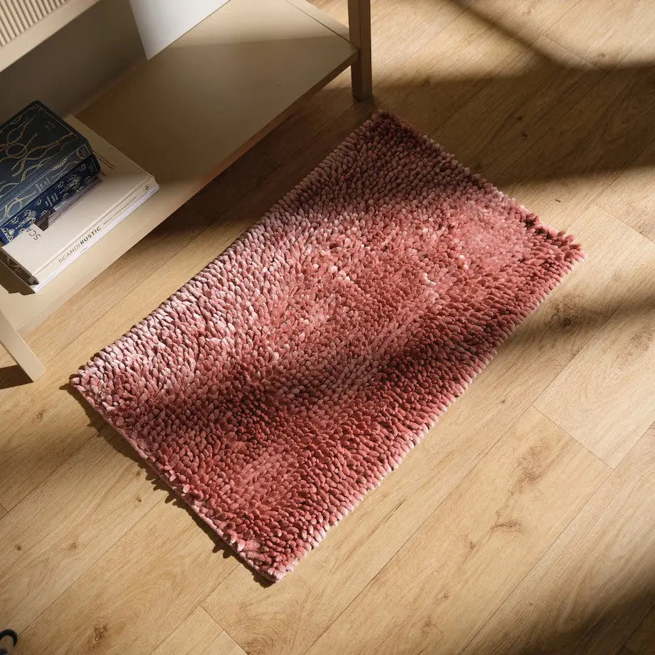 Tento tmavoružový polyesterový koberec s rozmermi 50 cm x 80 cm je štýlovým a funkčným doplnkom každého interiéru. Vyrobený z odolného materiálu, ktorý kombinuje mäkkosť s jednoduchým čistením, zatiaľ čo jeho intenzívna farba dodáva energiu a žiarivý akcent. Je ideálny do kúpeľne, kuchyne alebo chodby, poskytuje pohodlie pod nohami a účinnú ochranu povrchu.