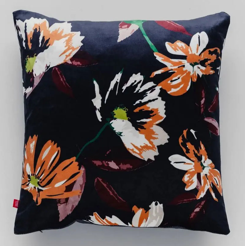 Modrá oranžová obliečka na vankúš s kvetovým motívom. Prinesie do vašej domácnosti mäkké kúzlo. Každej miestnosti dodá útulnosť, pohodlie a štýl. Má príjemnú, mäkkú textúru látky.