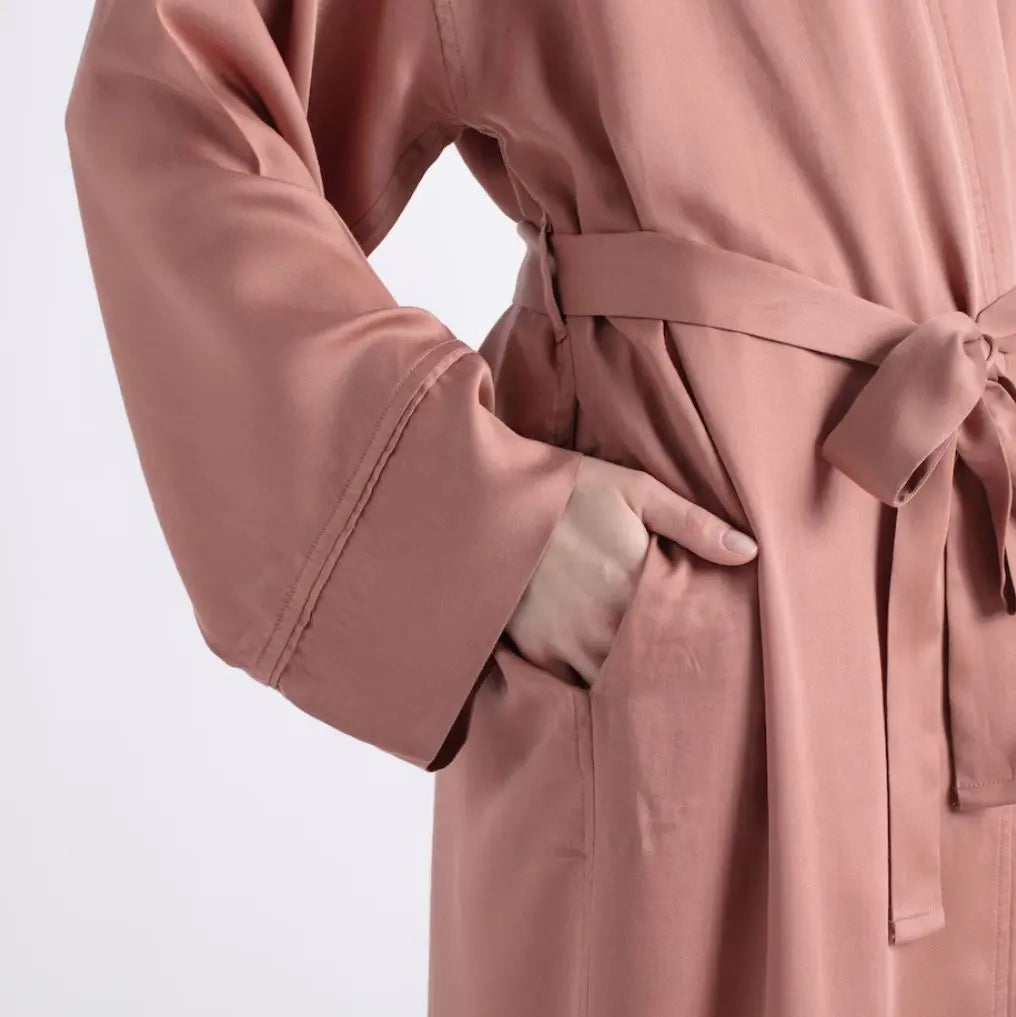 Ružový dámsky župan. Je spojením pohodlia a jemnej elegancie. Vyrobený z ľahkého a jemného materiálu. Poskytuje pohodlie na najvyššej úrovni.