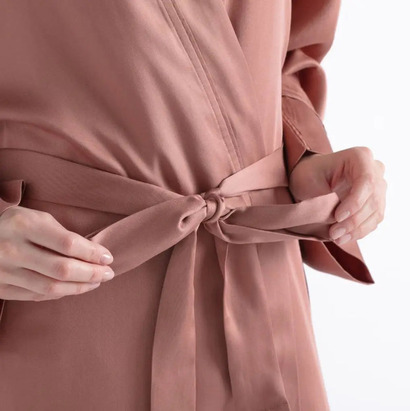 Ružový dámsky župan. Je spojením pohodlia a jemnej elegancie. Vyrobený z ľahkého a jemného materiálu. Poskytuje pohodlie na najvyššej úrovni.