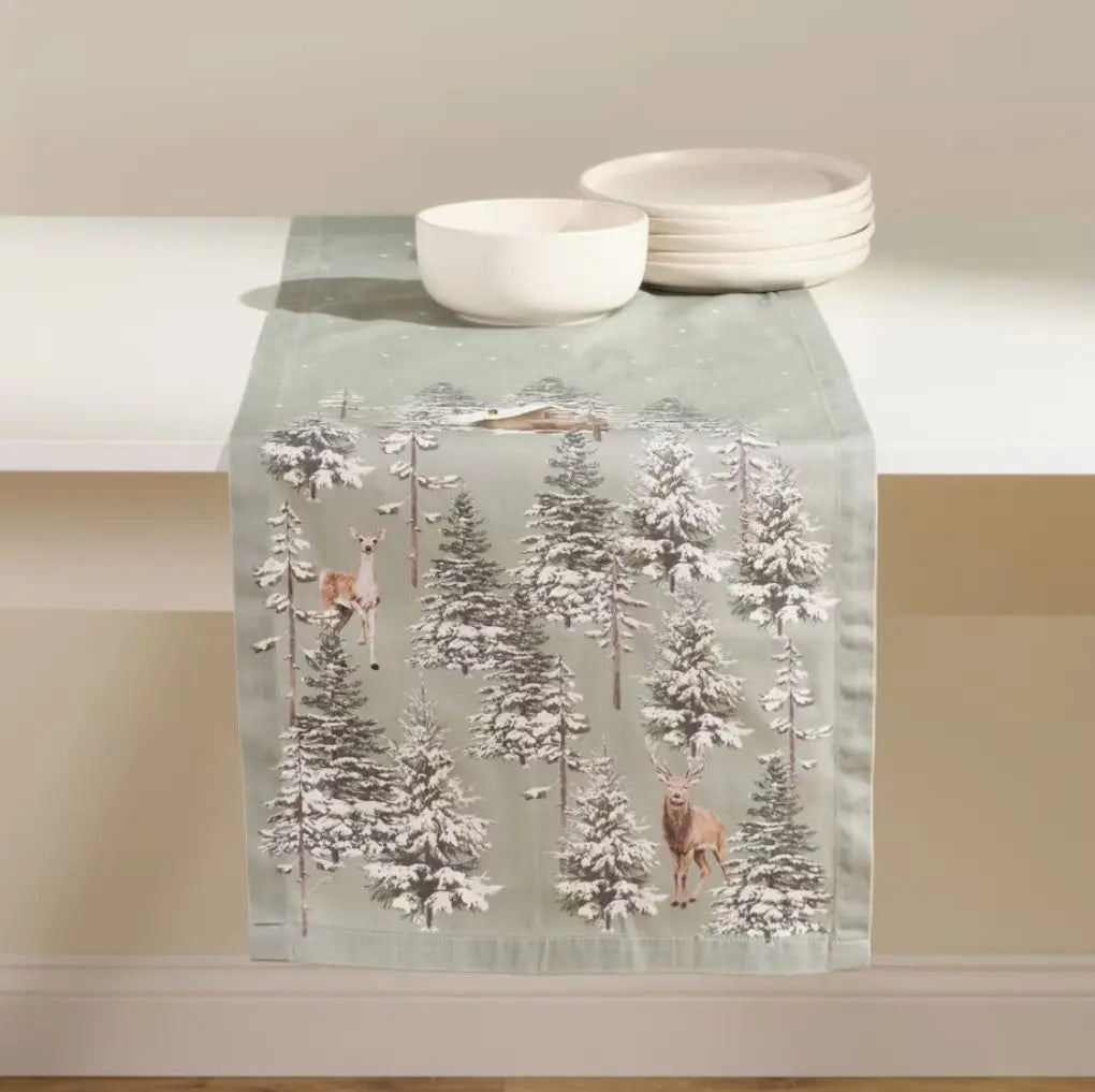 Sivá vianočná bavlnená štóla. Je nielen pekný dekoratívny doplnok vášho stola, ale taktiež ochráni vrchnú dosku pred poškodením a fľakmi. Skvelo ozdobí váš jedálenský stôl alebo doplní váš interiér.