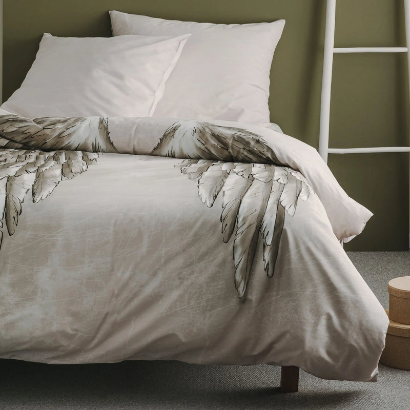 Sivé bavlnené obliečky. Sú na nich zobrazené operené krídla. Pomôžu vám oživiť výzdobu vašej spálne. Umožňujú veľmi pohodlný odpočinok vďaka príjemnej, mäkkej textúre látky. Priedušný materiál sa stará o fyziologické fungovanie pokožky a zabraňuje vzniku nočného potenia. Zapínanie má formu zipsu. Pred prvým použitím vyprať podľa pokynov na priloženej vložke. Pred vložením do práčky ich otočte naruby. Pre obliečky na vankúše odporúčame predovšetkým výplne dostupné v našom obchode.
