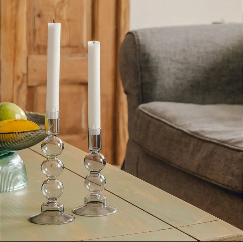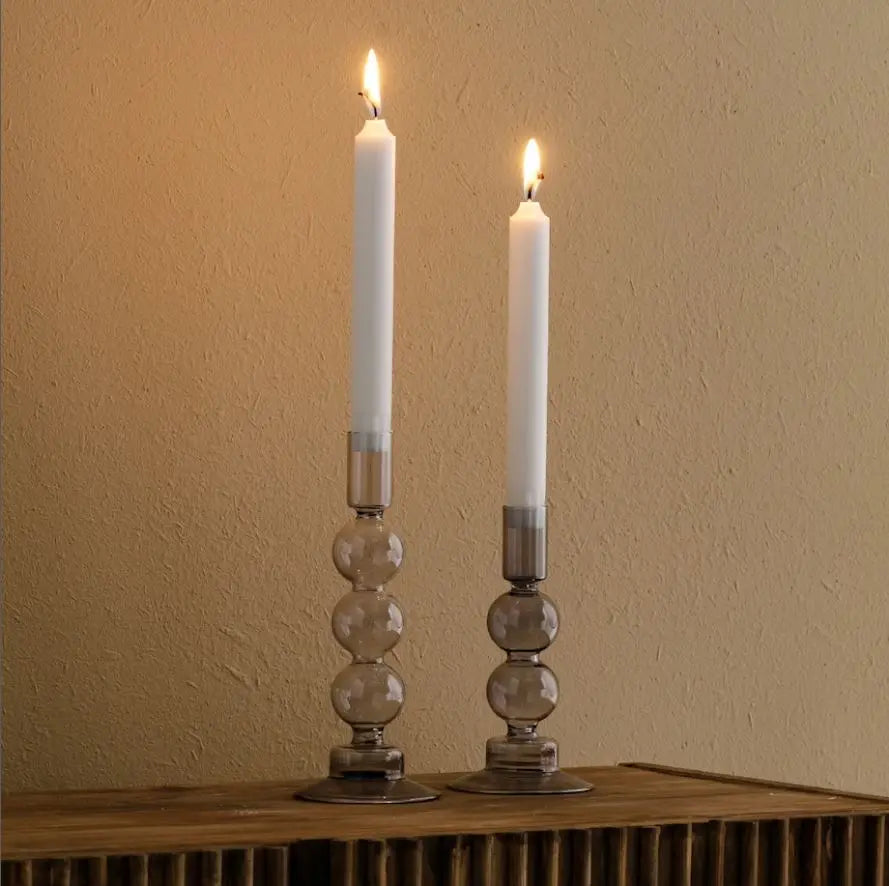 Sivý sklenený svietnik. Skvelo ozdobí váš jedálenský stôl alebo doplní váš interiér. Nájde si svoje miesto a uplatnenie v každej izbe a pekne vkusne ju premení. Teplé svetlo sviečok vytvorí v každej miestnosti pokojnú a útulnú atmosféru.