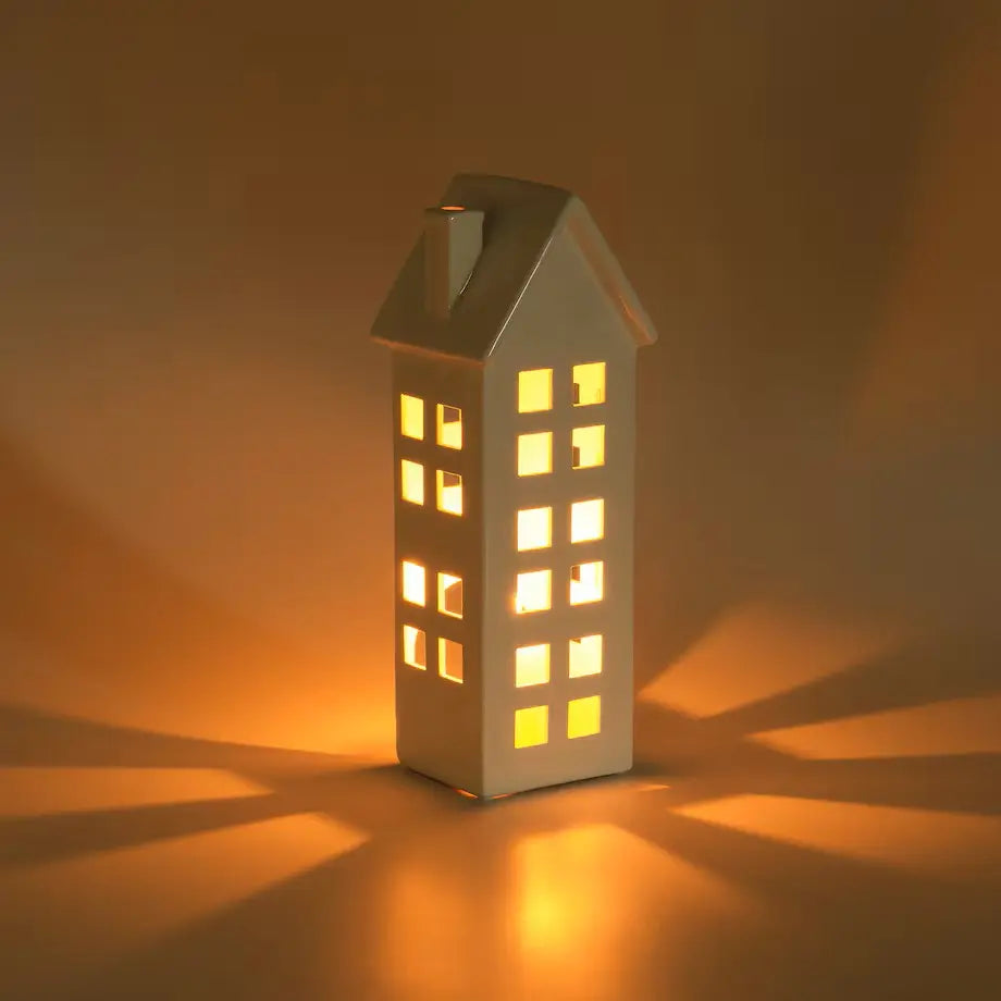 Tento svietnik v tvare malého, zasneženého domčeka je stelesnením zimnej pohody a vianočnej idylky. Keď doň vložíte čajovú sviečku, teplo plameňa vyžaruje cez okná, čím vytvára ilúziu, že v domčeku horí krb. Ideálny pre rozprávkovú, hrejivú atmosféru.
