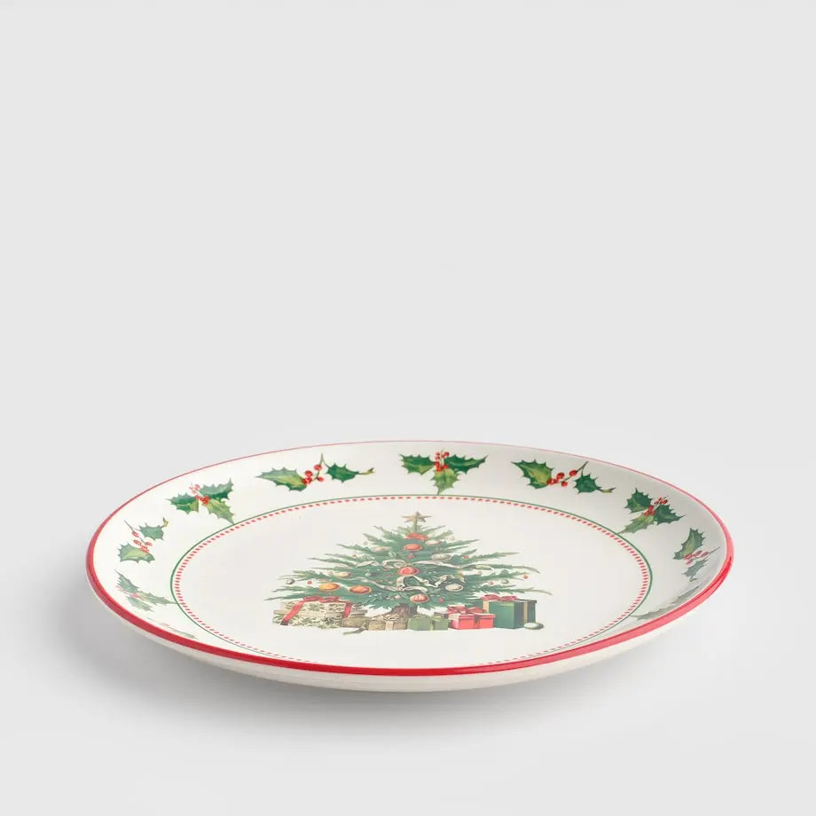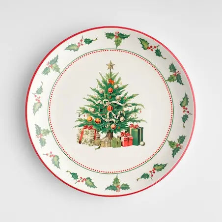 Ide o okrúhly, vianočne zdobený tanier, ideálny na servírovanie sviatočných pochúťok.
