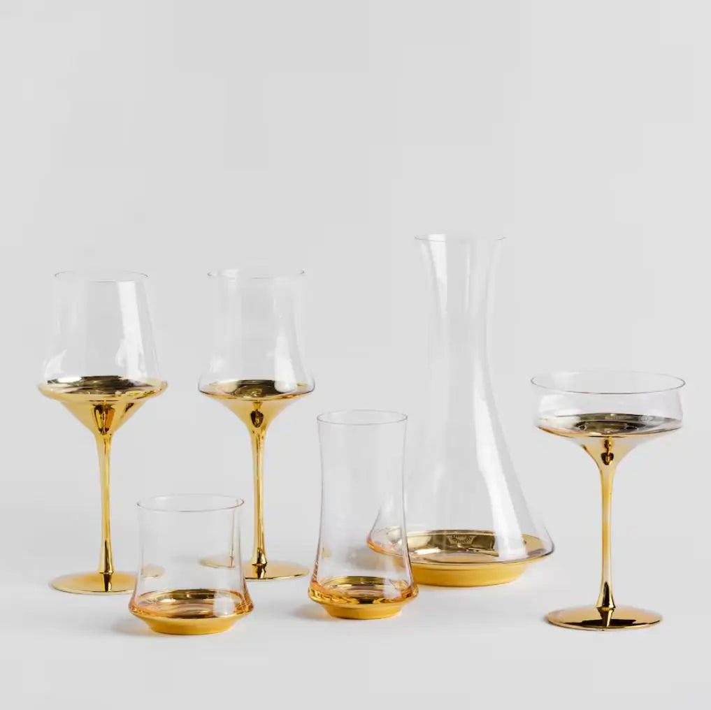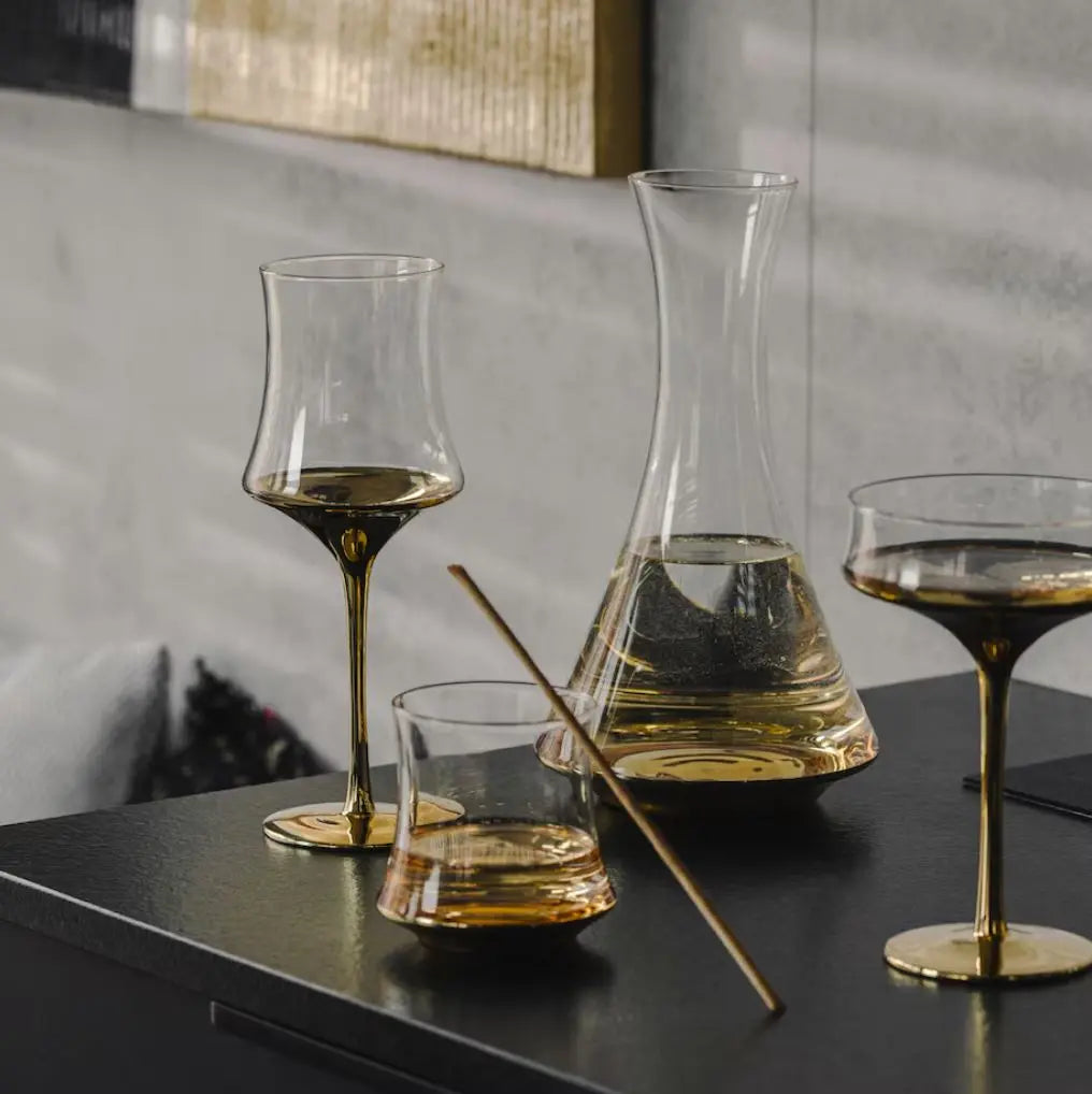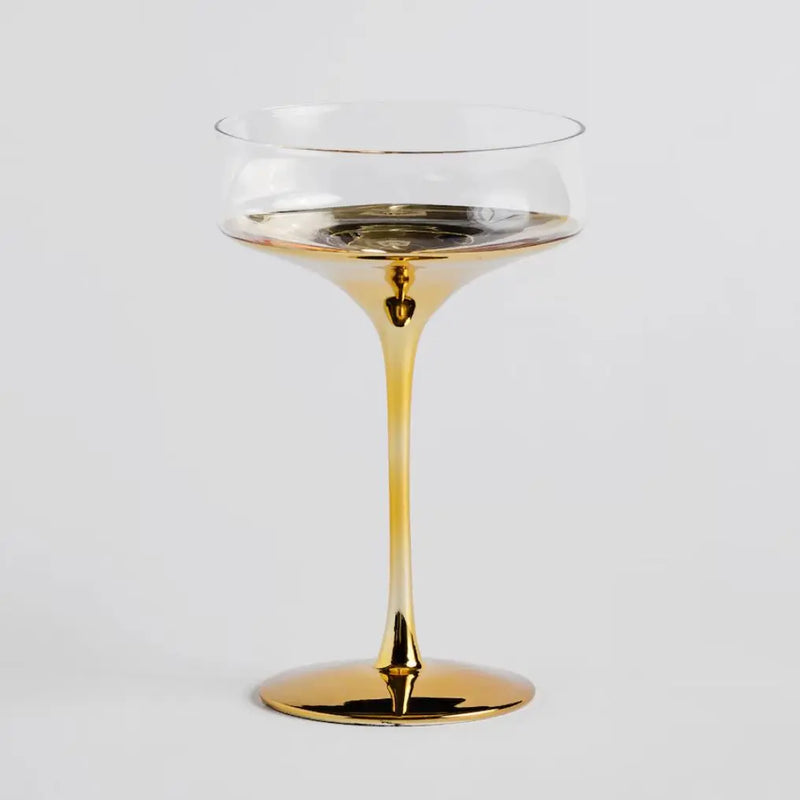 Transparentno zlatý pohár na koktejl. Obohatí každú kolekciu pohárov a dodá jedinečný lesk každému nápoju. Použitie sodno-vápenatého skla zaisťuje výnimočnú priehľadnosť a odolnosť proti poškodeniu, čo zaručuje dlhodobé používanie a estetický vzhľad.