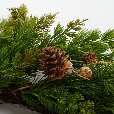 Tento veniec je navrhnutý tak, aby pôsobil mimoriadne realisticky a bohato, evokujúc tradičnú sviatočnú výzdobu z lesa.