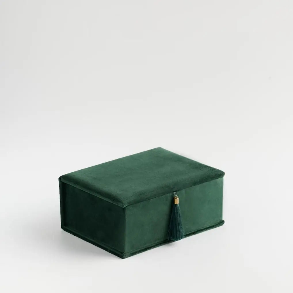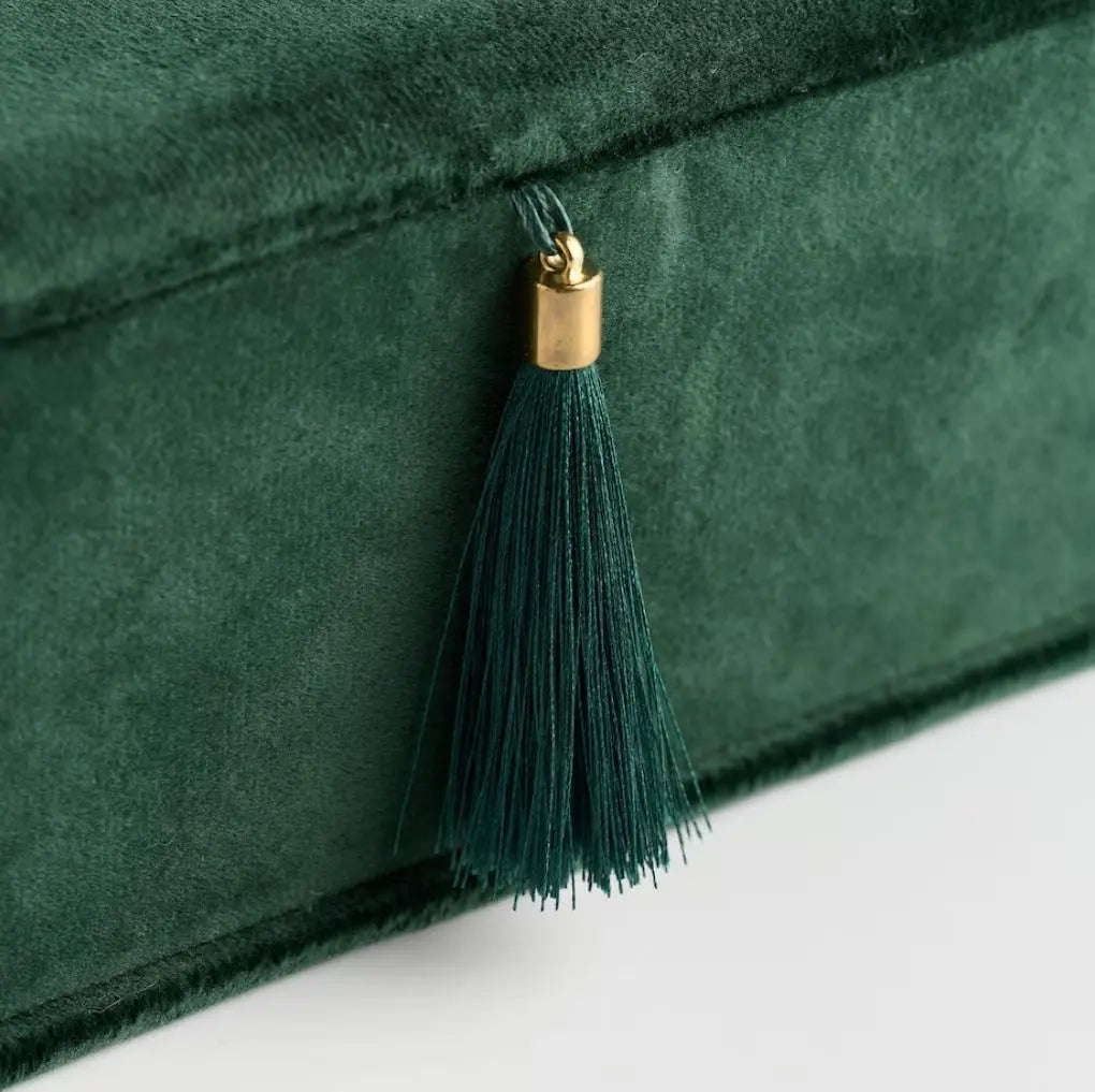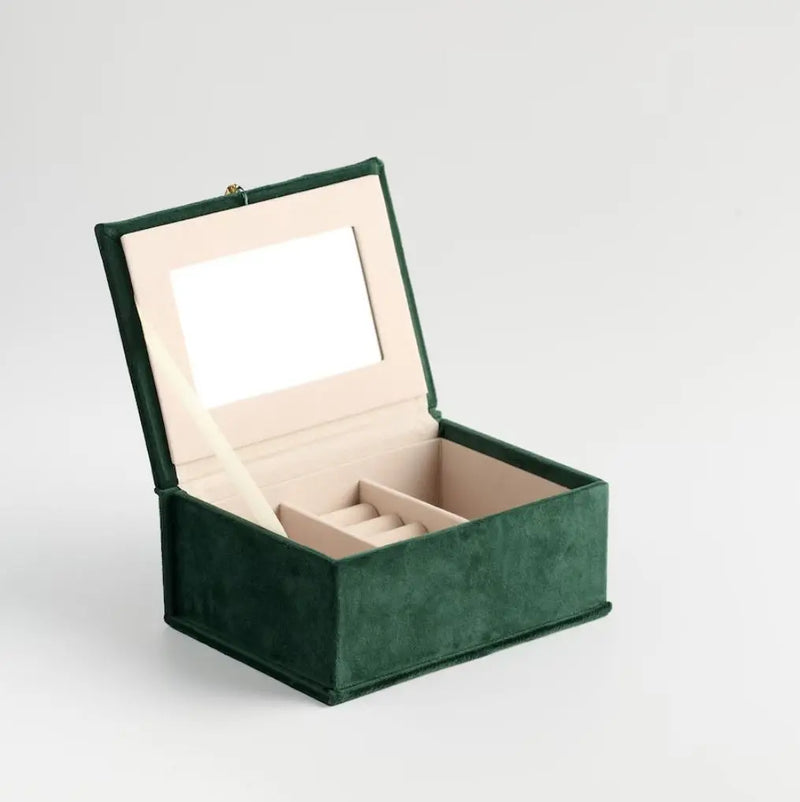 Zelená zrkadlová šperkovnica.Okrem elegantného a očarujúceho vzhľadu je mimoriadne praktickým doplnkom vhodným do akejkoľvek miestnosti. Je ideálna na odkladanie šperkov a vyzerá výborne na akomkoľvek stolíku či polici.