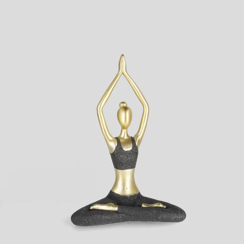 Zlatá figúrka v podobe postavy v jógovom posede. Jej moderný dizajn a starostlivé spracovanie z neho robia pútavý prvok akéhokoľvek dizajnu interiéru. Ideálne na zdobenie políc, komôd alebo písacích stolov, dodáva charakter a štýl a je dokonalým akcentom v minimalistických a elegantných aranžmánoch.